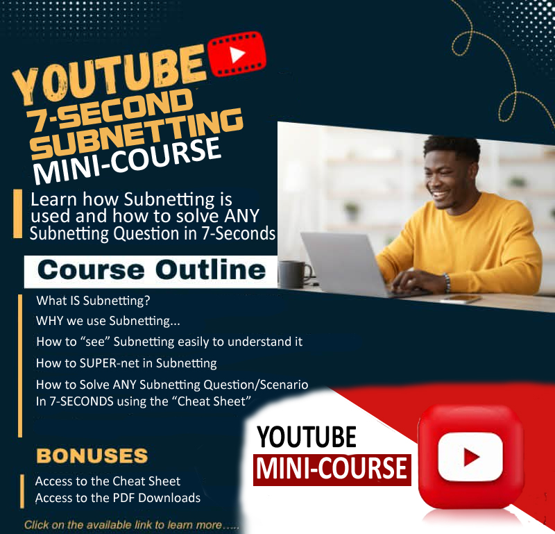 In this Youtube mini-course series, you’re going to know EXACTLY what subnetting is and why it’s used on computer networks and in just 7-Seconds you’ll solve any subnetting problem.